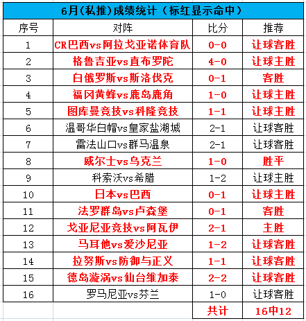 昨天周六,公推的比赛我下午日系全部命中,晚上的欧国联比赛没有命中,私推的比赛下午也是日系命中,晚场欧国联不中。目前整体6月公推是28中24,命中率85.7%,重点私推16场命中12场,命中率75%。今天我们先来看一场中午日乙的赛事。