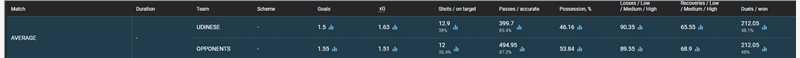 Udinese is ranked 14 with 3 wins, 7 draws & 5 losses for 20 goals scored & 24 goals conceded.